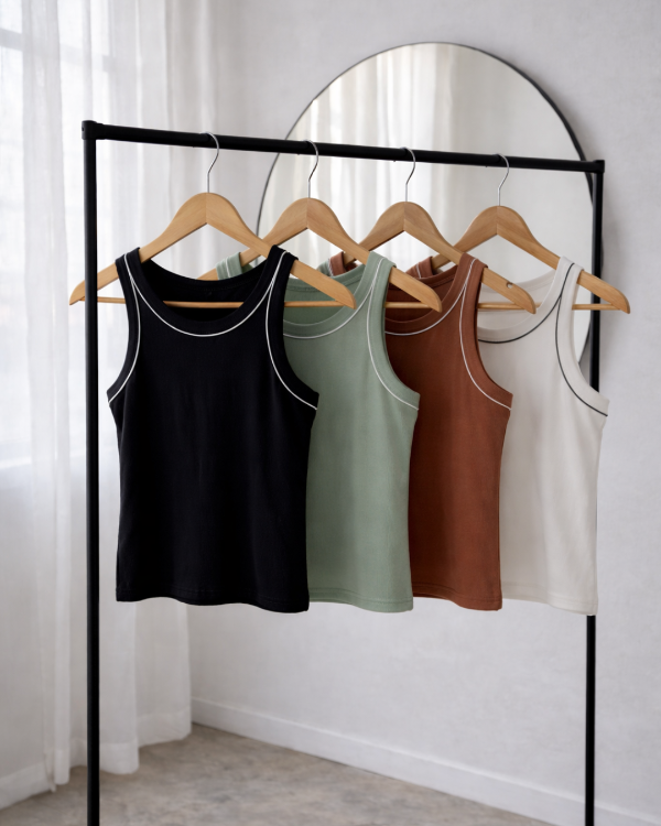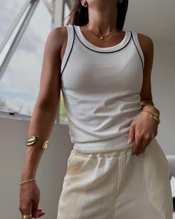 Musculosa de morley con detalles finos en tonos blanco/negro (depende el color)