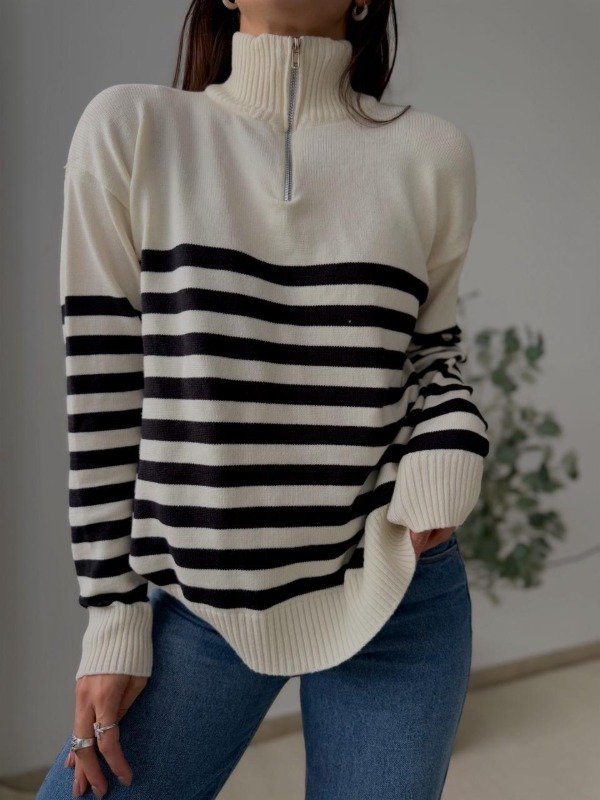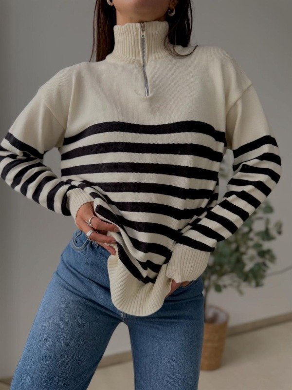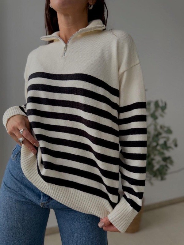 sweater de bremer rayado, con medio cierre.